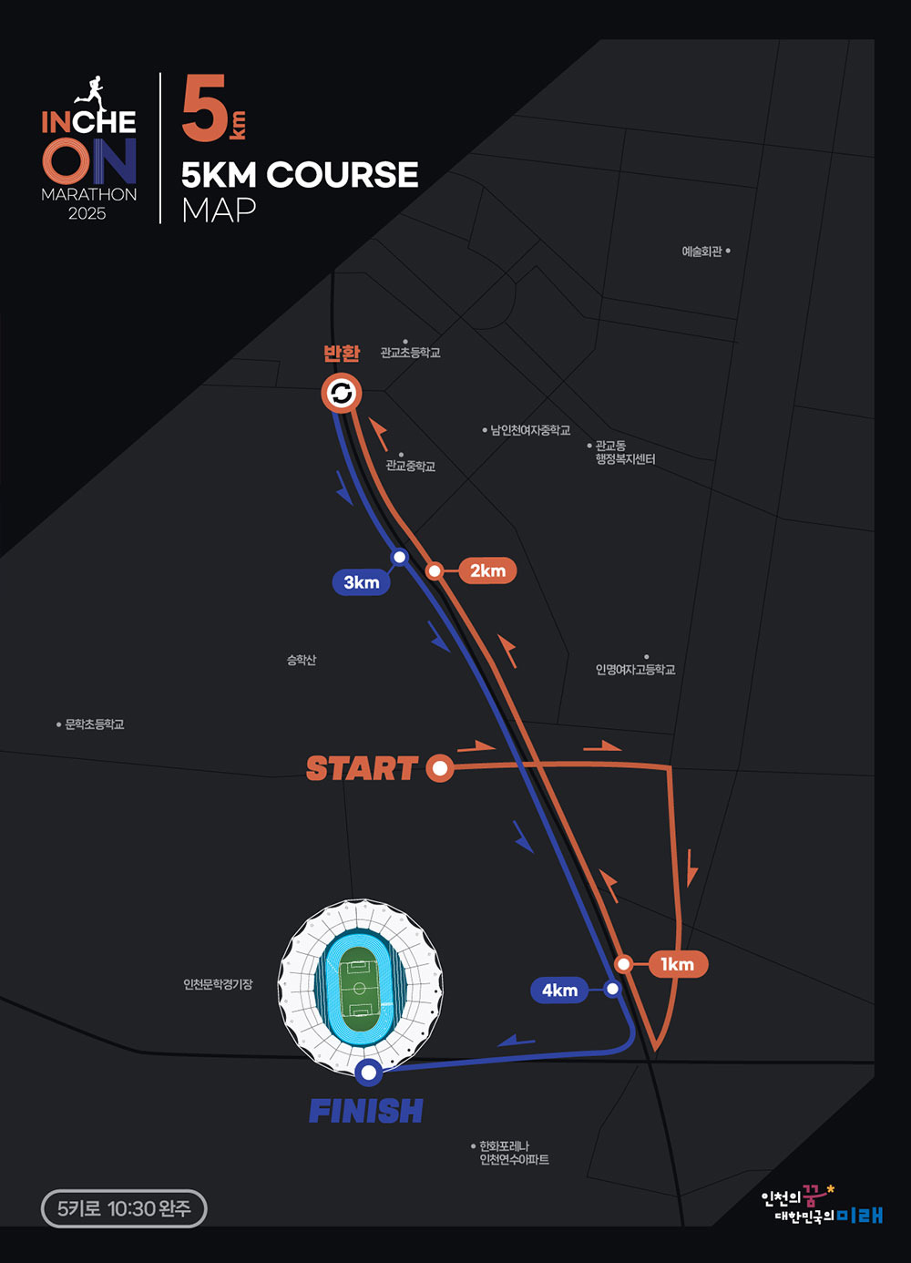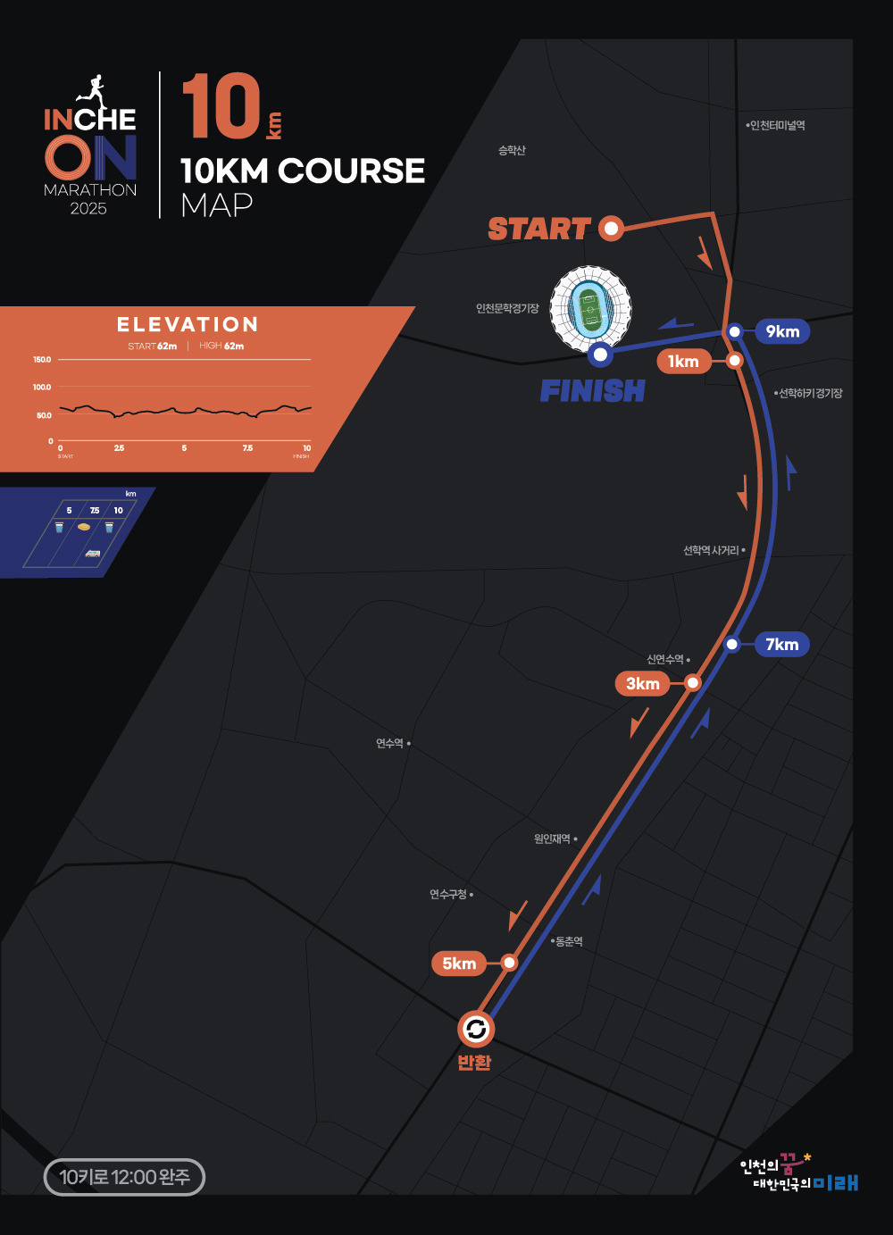 - 10km 코스: 문학경기장 → 연수IC 반환점