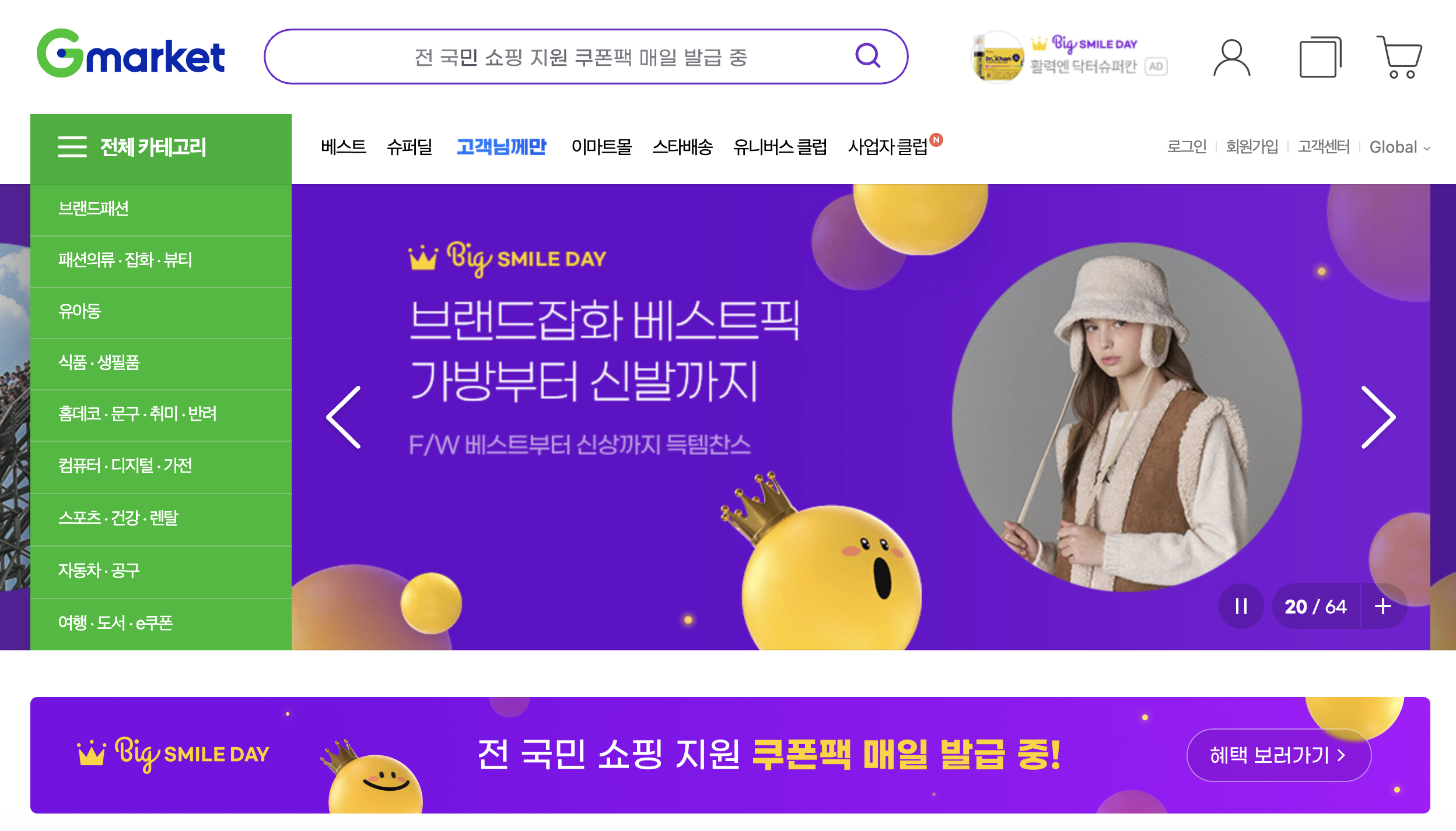 G마켓과 옥션이 함께 주최하는 **‘빅스마일데이(Big Smile Day)’**는