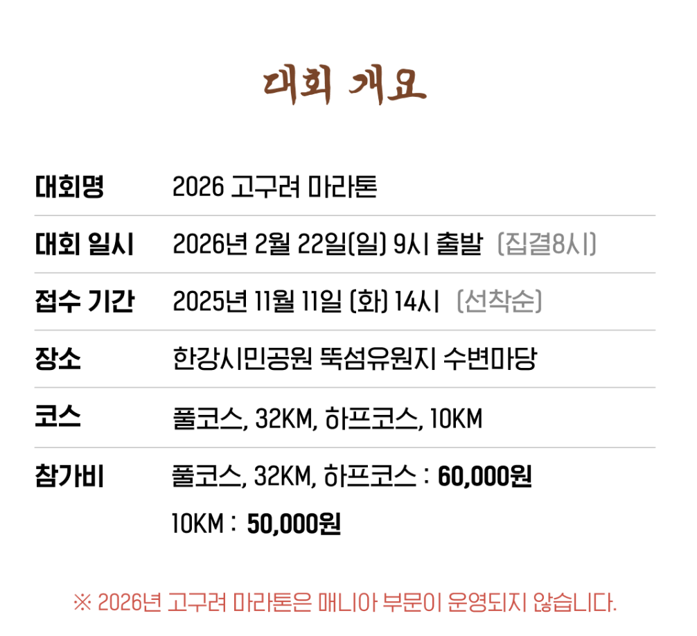 3. 2026 고구려 마라톤 종목 및 참가비