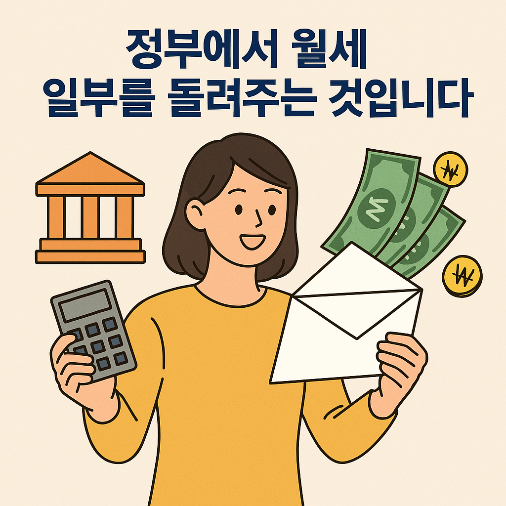 매달 월세를 내는 사람에게 정부가 “너무 부담되니 세금 일부를 깎아줄게!”라고 지원하는 정책이에요.