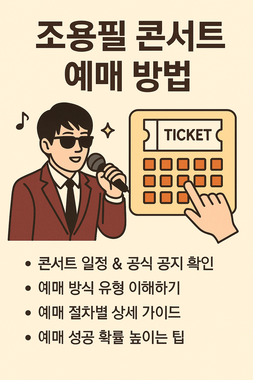 요약: 조용필 콘서트 예매는 일반 판매, 추첨 응모, 팬클럽 우선 예매 등 다양한 방식이 사용됩니다.