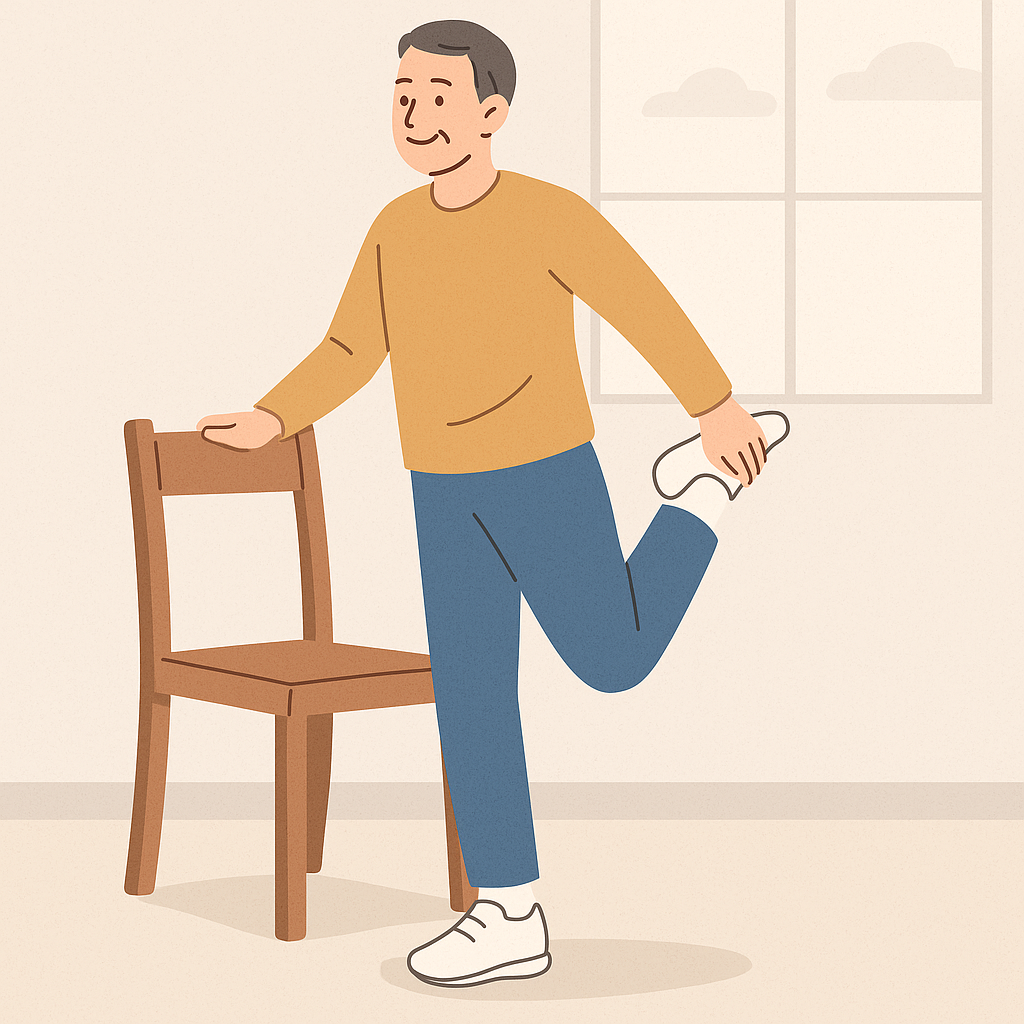 - 방법: 서서 한쪽 발목을 잡아 엉덩이 쪽으로 당기고 20초 유지