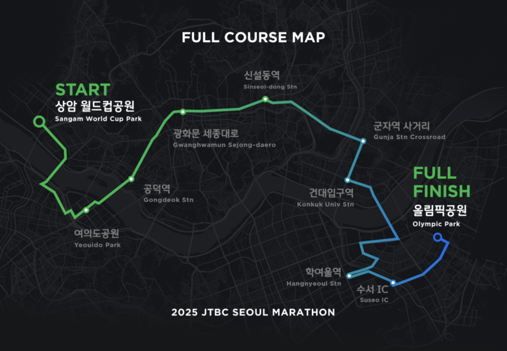 요약: 풀마라톤 8시, 하프 8시 30분, 10km 9시 출발